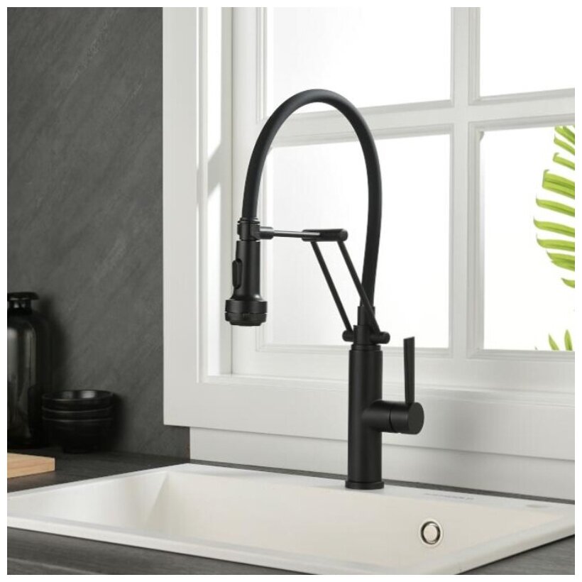 Смеситель сделан из нержавеющей стали и обладает 4-мя режимами переключения воды. Гусак смесителя сделан из эластичной резины. Благодаря различным режимам переключения воды и выдвижному гусаку - можно достать трудные места для мытья кухонной мойки.