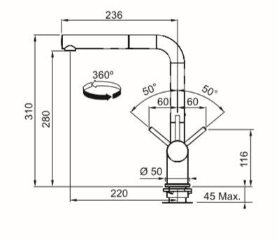 Смеситель Franke Active Plus с выдвижным шлангом имеет корпус из латуни с низким содержанием свинца. Выпускается в 8 цветах Fragranite+ и с хромированным покрытием. Радиус поворота 360° и высокий излив позволяют мыть и наполнять водой большие емкости.
