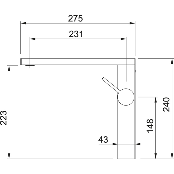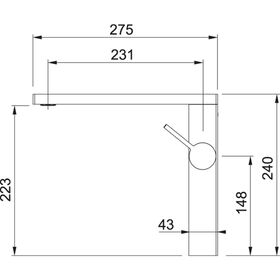 Длина излива 231 мм
