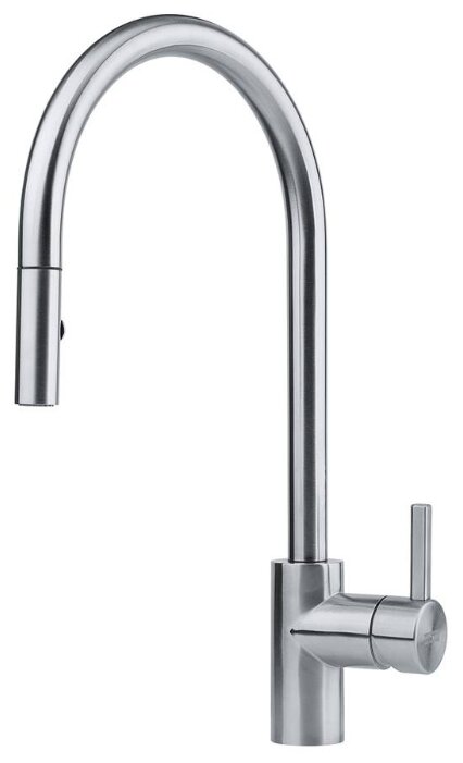 Смеситель Franke Eos Neo с выдвижным шлангом имеет два режима душ и струя. Специальный аэратор создаст мягкий ламинарный поток, который предотвращает появление брызг. Корпус и лейка из выполнены из массива нержавеющей стали AISI 304.