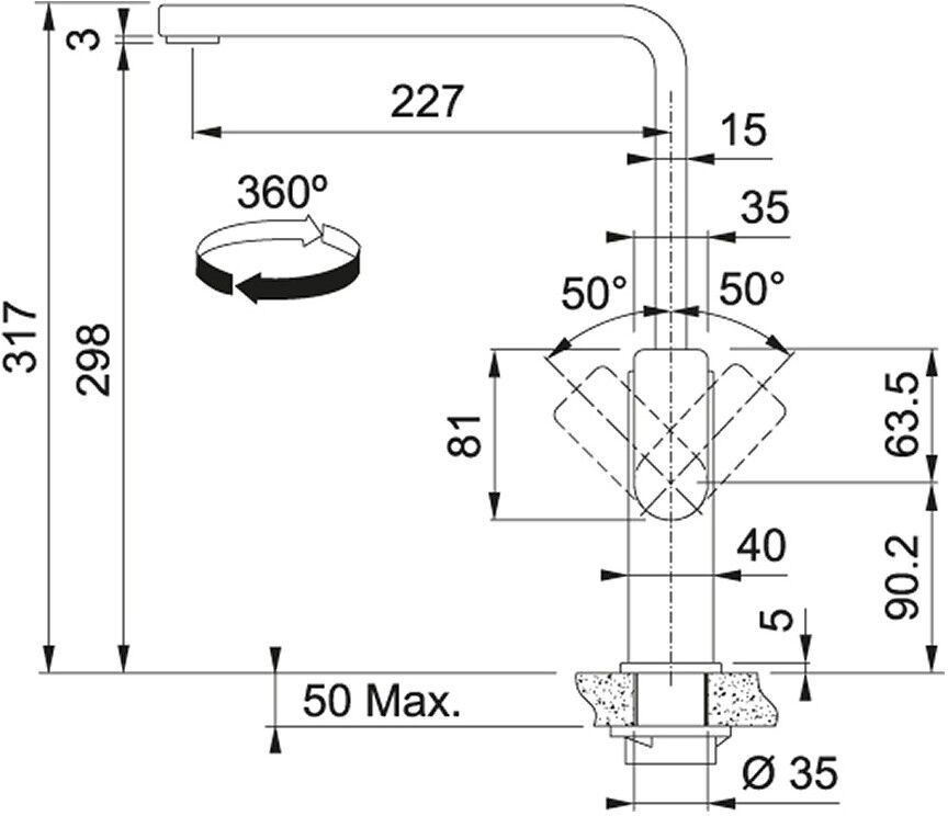 Тип смесителя: ламинарный поток воды без разбрызгивания