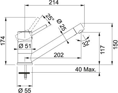 Высота смесителя, см