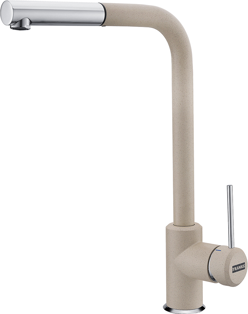 Врезной однорычажный кухонный смеситель Franke Sirius Side ром с выдвижным изливом, рычагом сбоку и многоуровневым аэратором.