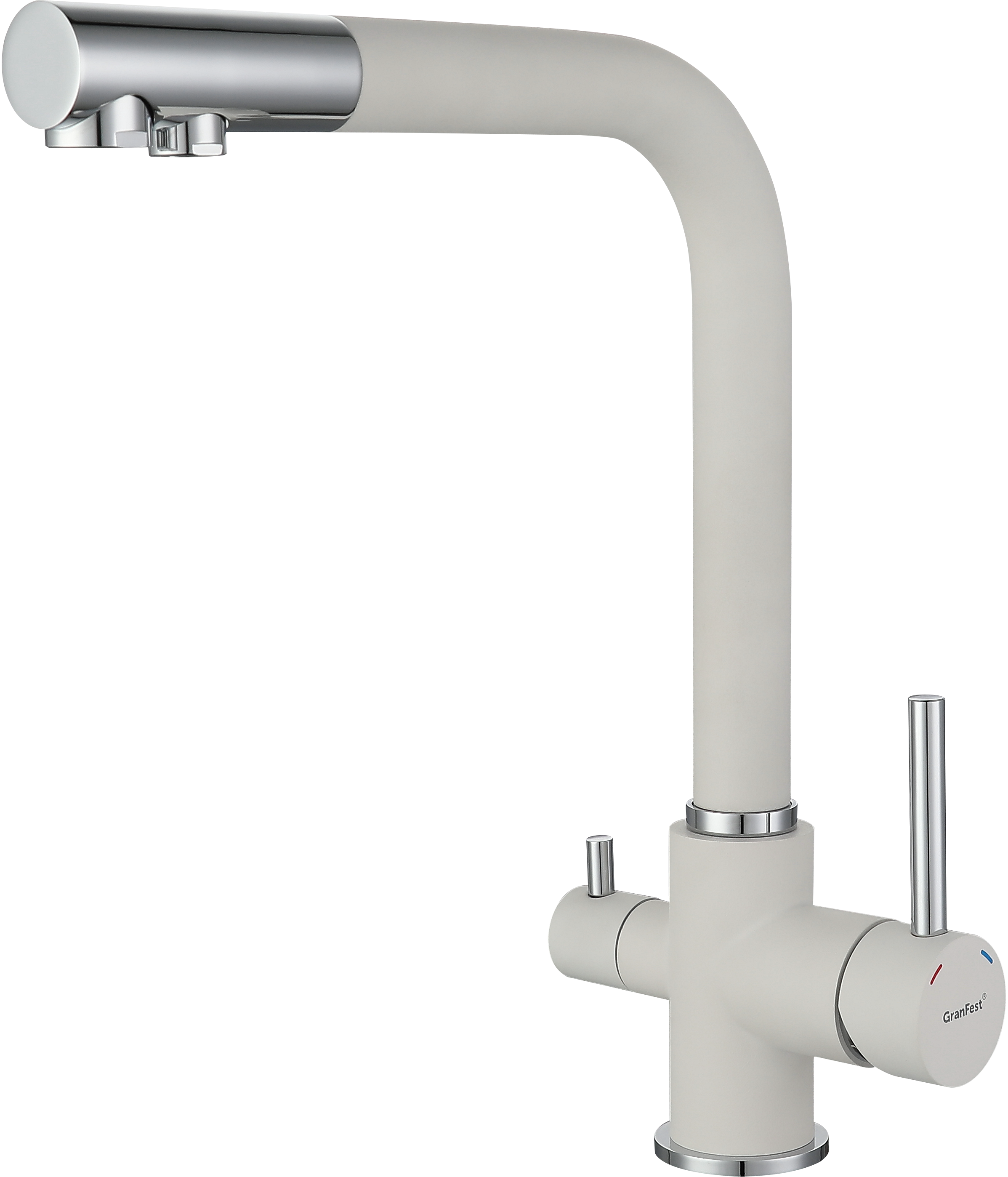 Смеситель 3611 изготовлен из высококачественной латуни и прослужит Вам долгие годы. Поверхность смесителя окрашена в цвета мраморных моек GranFest. Стильный и надёжный вариант прекрасно впишется в интерьер любой современной кухни. Смеситель оснащен: - краном с питьевой водой; - керамическим картриджем, диаметром 35 мм; - гибкой подводкой на 60см. Вращение излива позволит Вам удобно располагать его во время мойки посуды. в излив смесителя уже установлен аэратор, это экономит воду во время мытья, и сохраняет тишину.