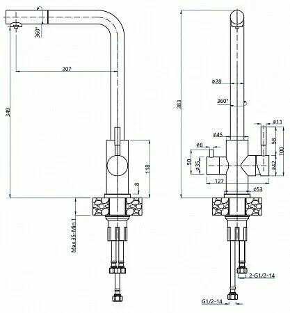 Общие характеристики Тип смеситель Назначение для кухни (мойки) Управление рычажное Тип излива поворотный Функции переключатель на фильтр Монтаж Монтаж горизонтальный