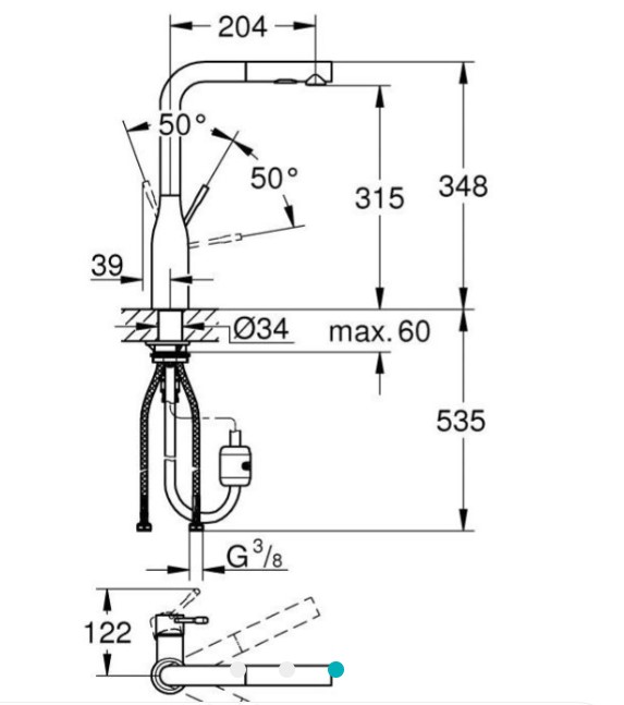 Выдвижной излив: | да |