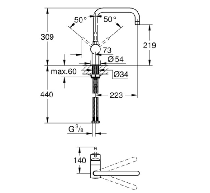 Управление смесителем: Рычаг