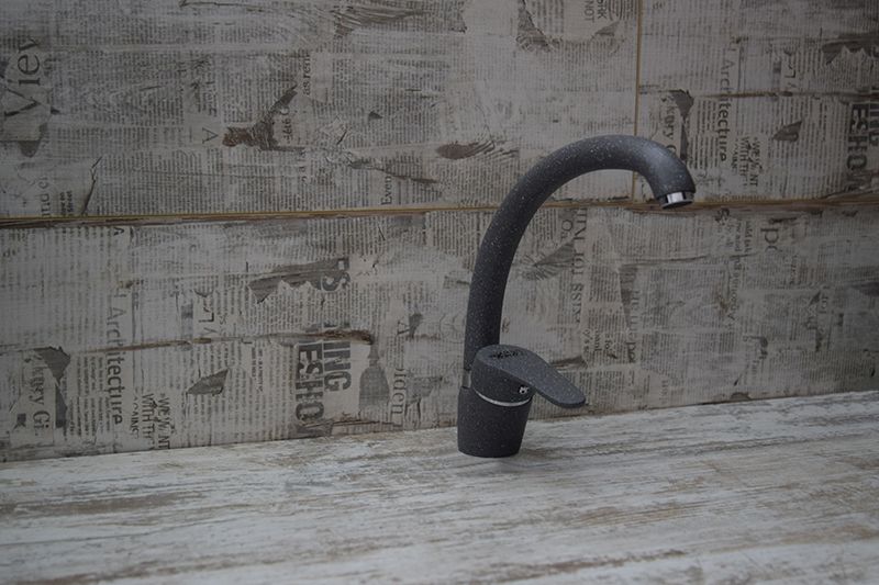 Смеситель Караван 33-06/65 для кухни с подводкой 40 см. камень темно-серый