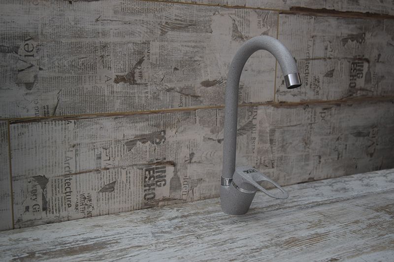 Смеситель Караван 331-06/65 для кухни с подводкой 40 см. камень универсально-серый