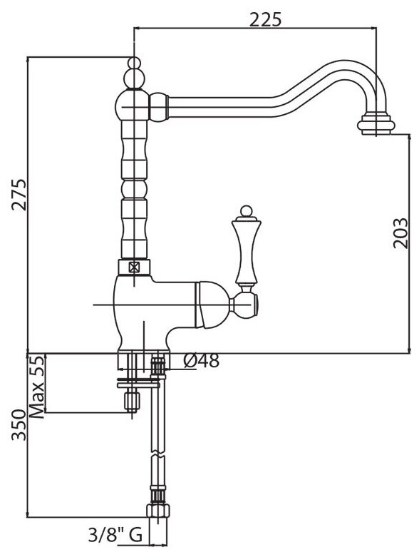 Смеситель для кухни Cezares Margot MARGOT-LLM2-01-M однорычажный с поворотным изливом.
