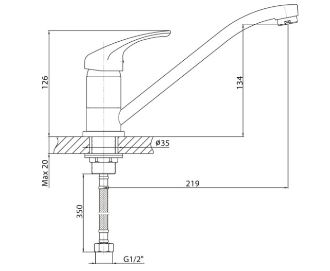 Высота смесителя 156 мм