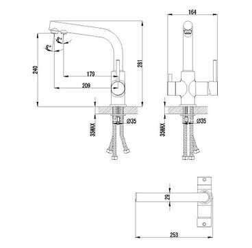 Высота смесителя 281 мм