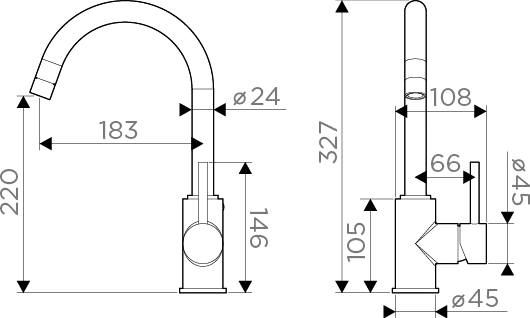 Угол поворота излива 360°