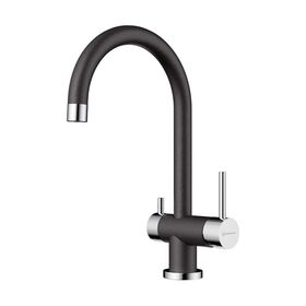 Смеситель для кухни Omoikiri YAMADA с высоким изливом для питьевой воды. Практичный модельный ряд 3 в 1: функция подачи холодной/горячей воды и возможность подключения фильтрованной воды. Вода, проходя через фильтры, подается по отдельной изливу трубочке в кран и не смешивается с водопроводной водой. Изделие модельного ряда «Comfort» оснащен долговечным керамическим картриджем и аэратором из пластика, на котором не появится известковый налет и ржавчина.