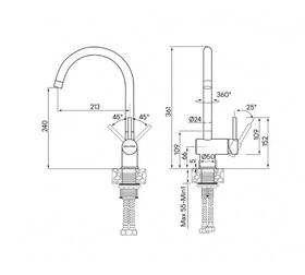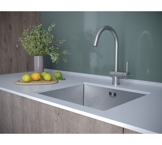 Смеситель для кухни BEND Be212066. Нержавеющая сталь высочайшего качества AISI 304 легирована никелем, марганцем, медью и хромом, что обеспечивает ей повышенную прочность и устойчивость в коррозионных средах, такая сталь не подвержена деформациям. Высокий изогнутый излив, вращающийся на 360 градусов, обеспечивает легкое мытьё и наполнение высокой посуды и ваз. Лаконичный дизайн станет универсальным решением для любого интерьера. Комплект гибкой подводки для подключения воды и системы фильтрации имеет оплетку из нейлоновой нити, что значительно увеличивает срок службы подводки, а так же не позволяет появиться конденсату на шлангах.