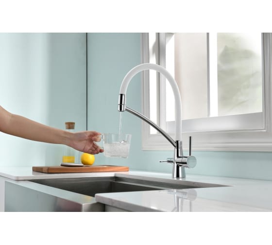 Модель является практичной: позволяет подключить фильтр для воды без дополнительных отверстий в мойке. Очищенная вода поступает по отдельному каналу и не смешивается с водопроводной.