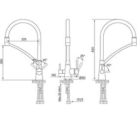 Смеситель оснащен гибким изливом, который удобен для чистки и ополаскивании раковины, а также для наполнения водой больших емкостей.