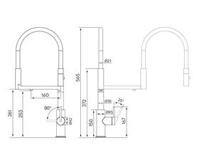 Возможность присоединения фильтра для воды, Гибкая подводка, Поворотный излив, Режим душ излива