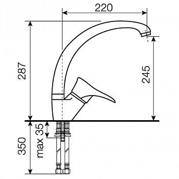 Конструкция: керамический картридж 40мм, гибкая подводка, аэратор
