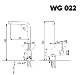 Высота излива, мм: 281