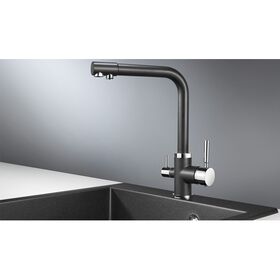 вес 1.8 кг; максимальная толщина столешницы 25 мм; система подачи питьевой воды активируется при помощи второго рычага, реализована благодаря подаче фильтрованной воды через отдельную трубку