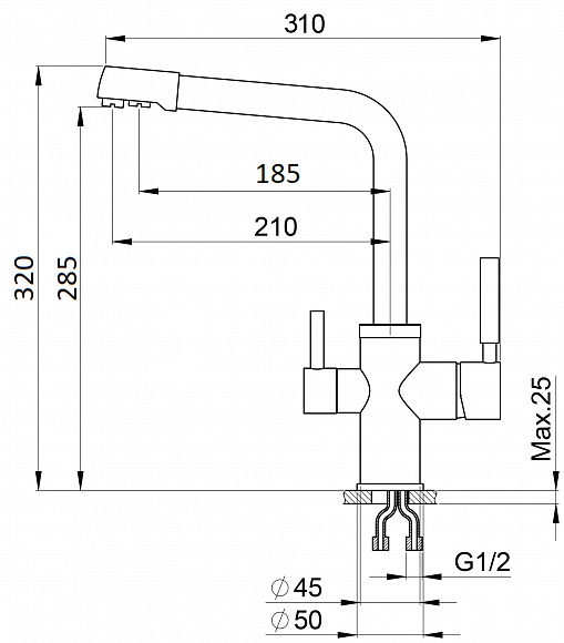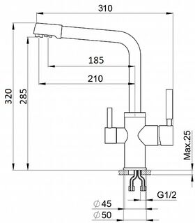 Исполнение излива: монолитный, поворотный, с подключением к фильтру для питьевой воды