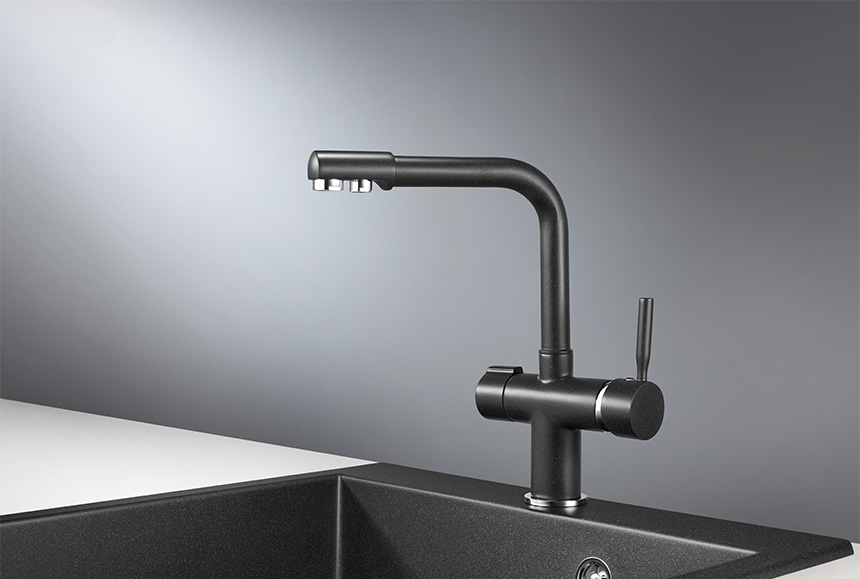 Исполнение излива: монолитный, поворотный, с подключением к фильтру для питьевой воды