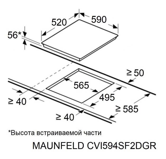Габариты ниши для встраивания (Ш х Г), см 56.5 х 49.5