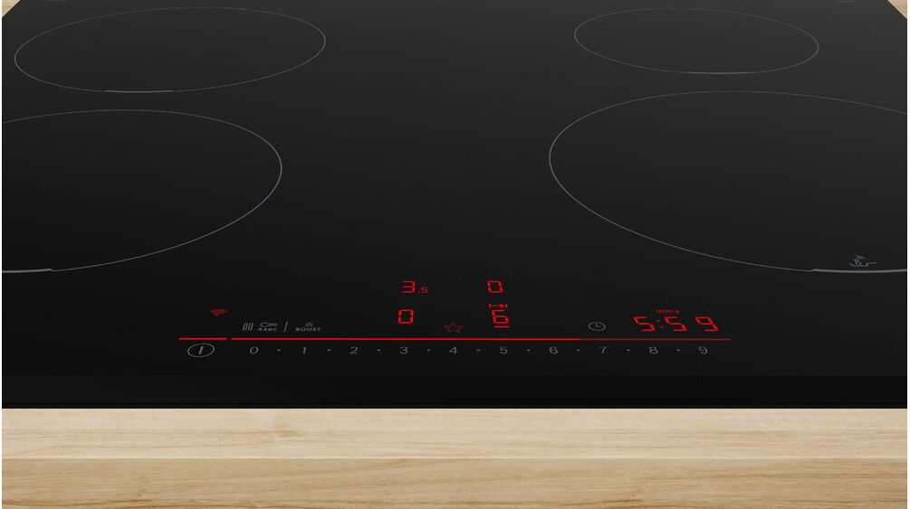 Индукционная варочная панель Bosch PIE631HB1E - современное решение для вашей кухни. Модель оснащена четырьмя конфорками, что позволяет одновременно готовить несколько блюд. Уникальная черная поверхность панели придает ей элегантный и стильный вид. Сенсорное управление и TFT-дисплей обеспечивают удобство и простоту использования. Функция распознавания посуды автоматически определяет размер и положение посуды на панели, что позволяет эффективно использовать энергию.