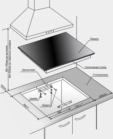 | Размеры ниши для встраивания (ШхВxГ) | 724 x 486 x |