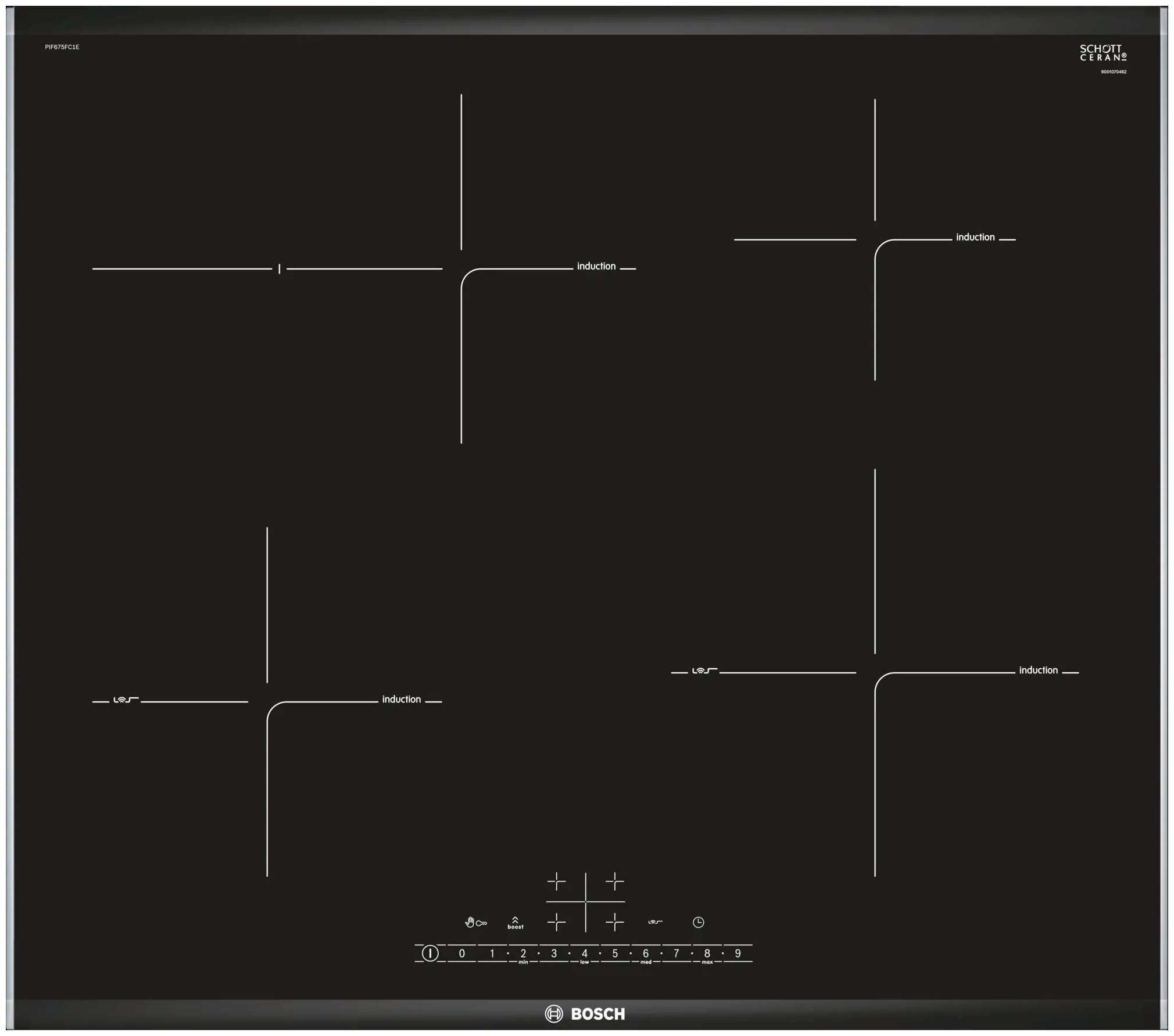 защитное отключение конфорок, кнопка блокировки панели, индикатор остаточного тепла