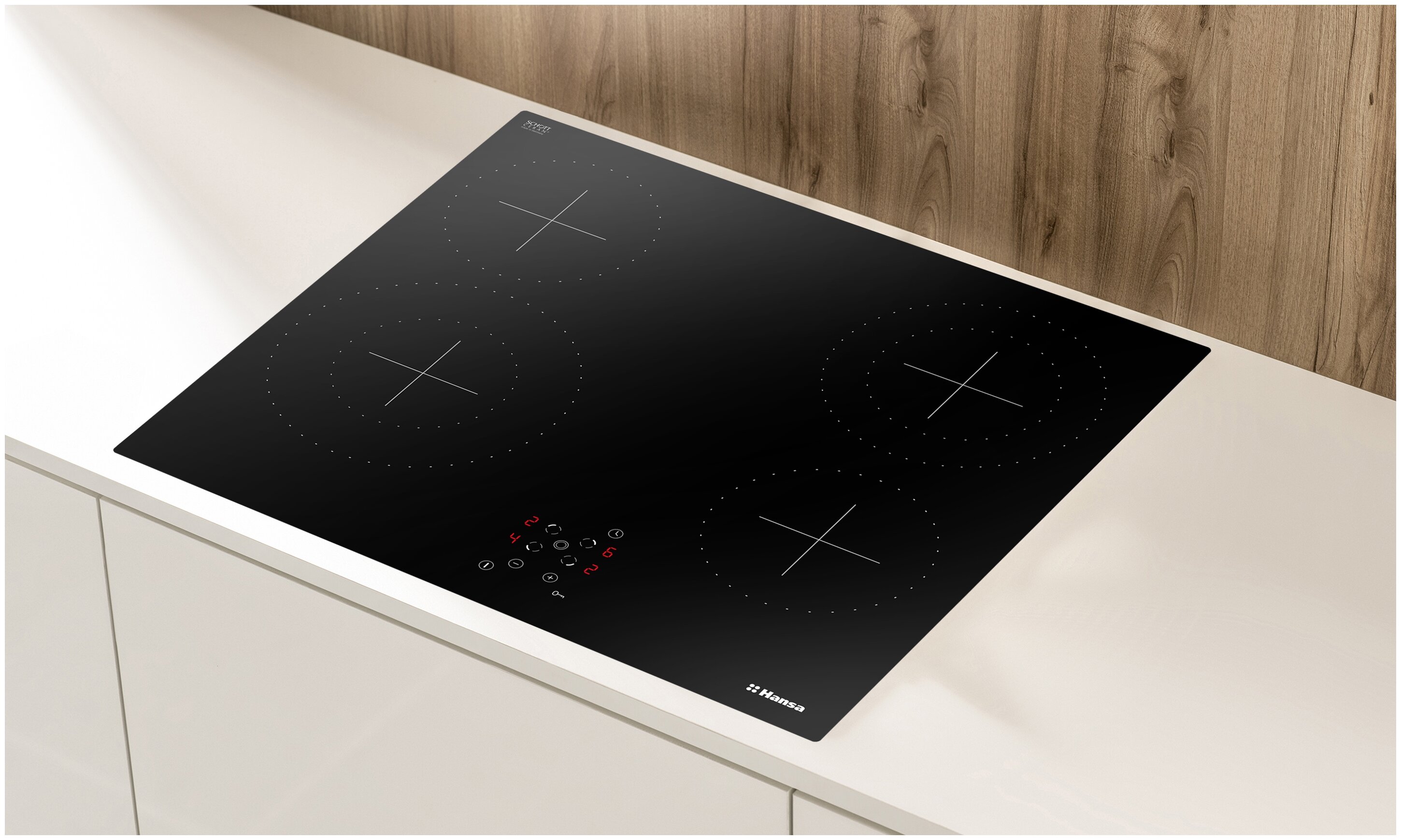защитное отключение конфорок, кнопка блокировки панели, индикатор остаточного тепла