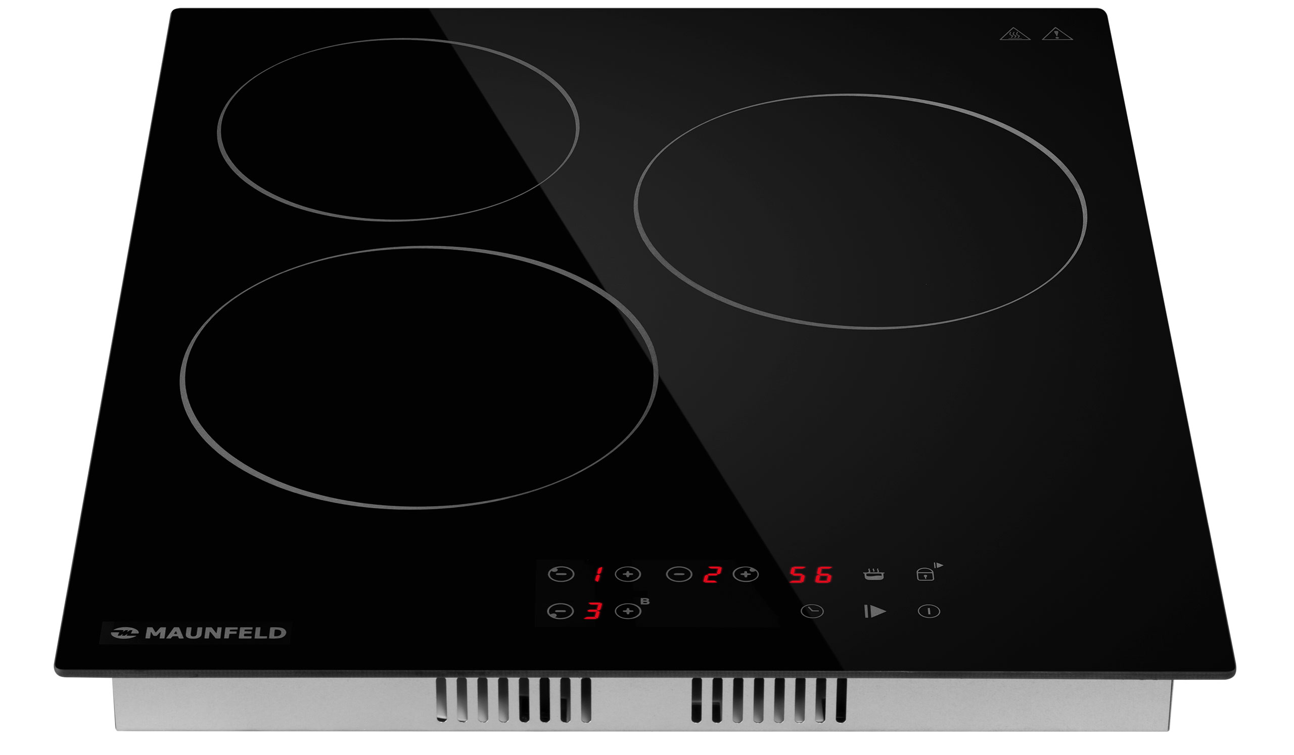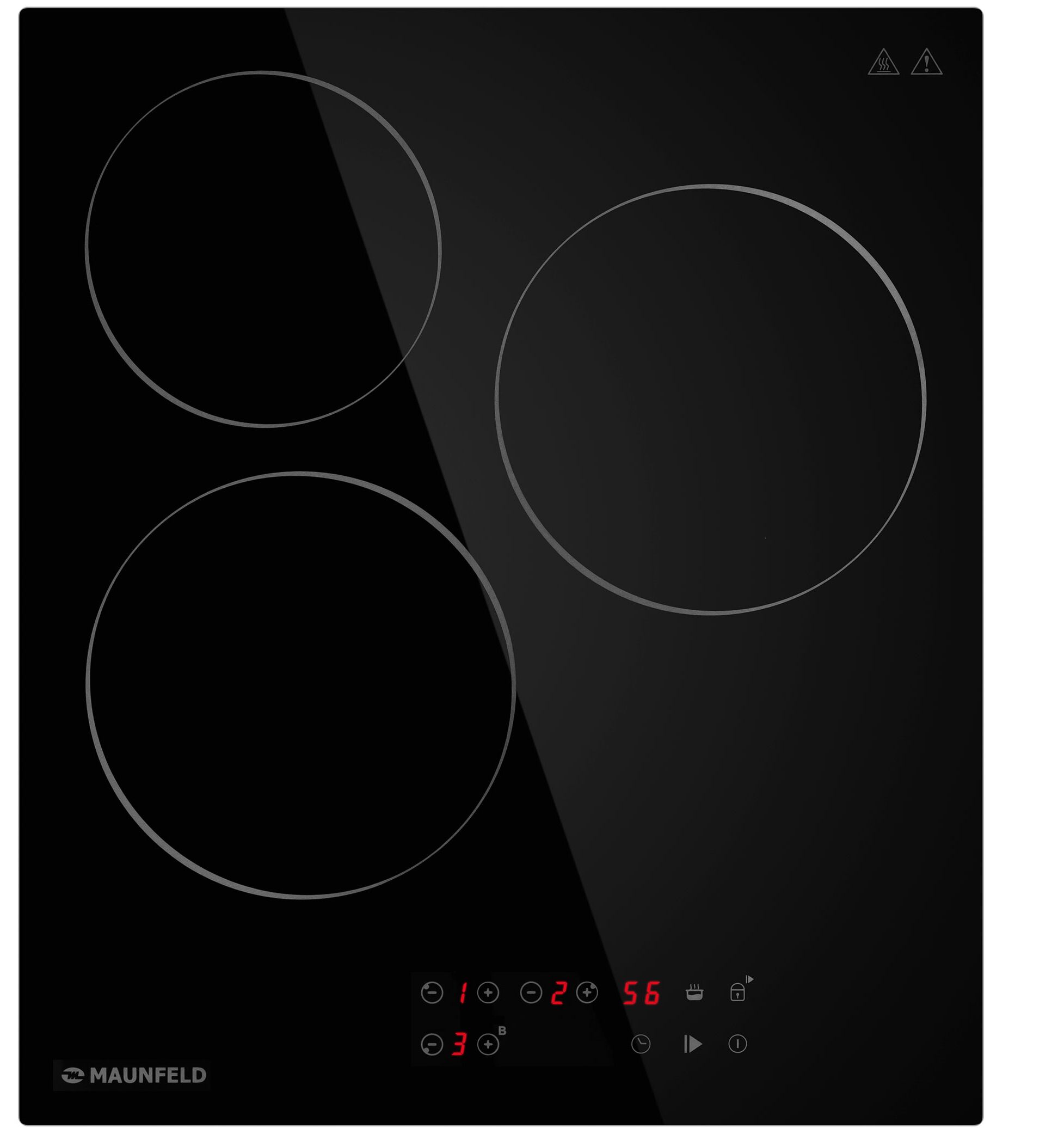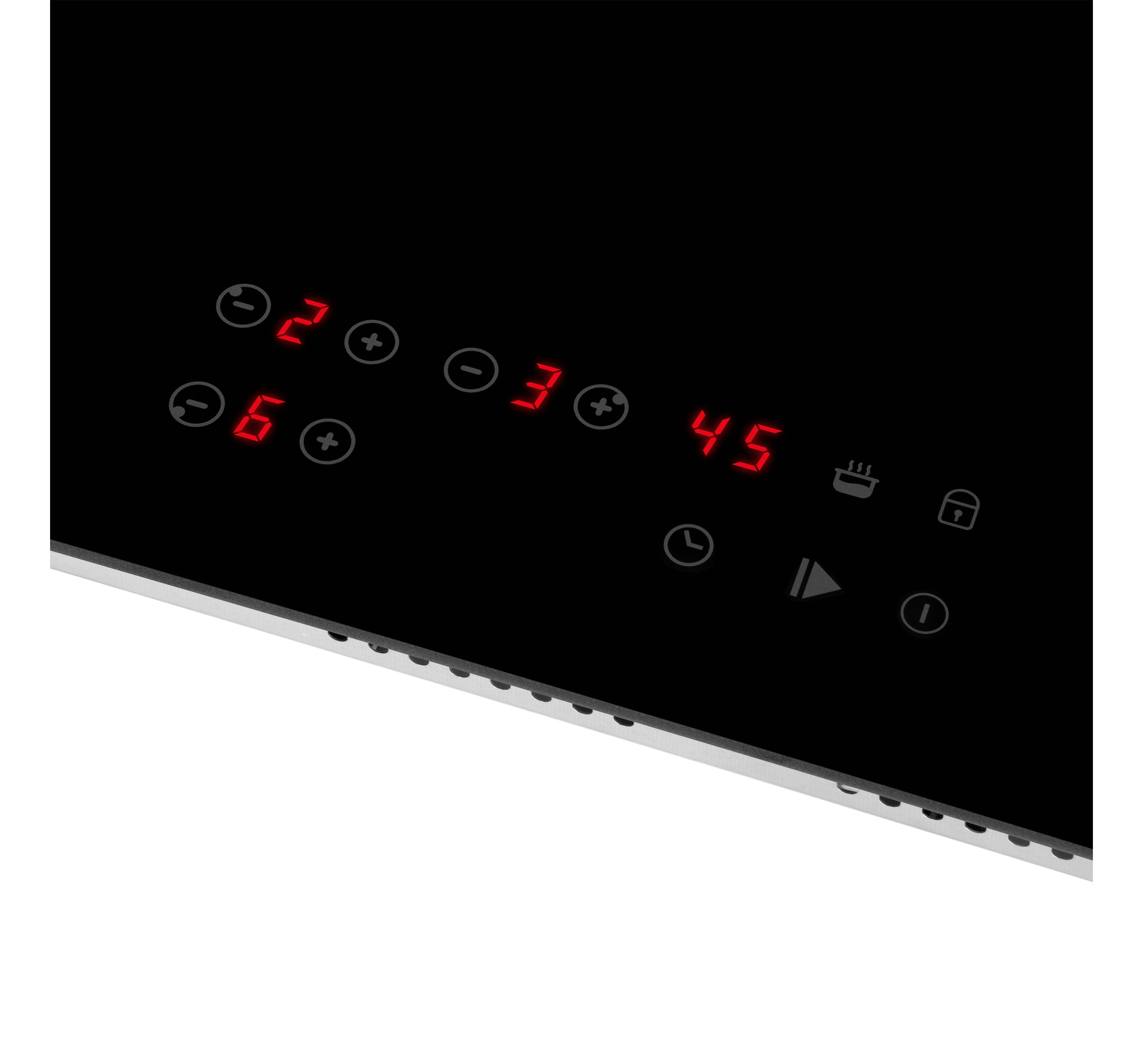 защитное отключение конфорок, индикатор остаточного тепла, кнопка блокировки панели