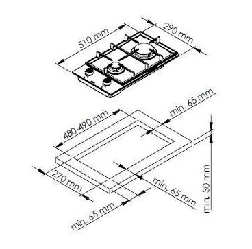 Ширина варочной поверхности, см: 29