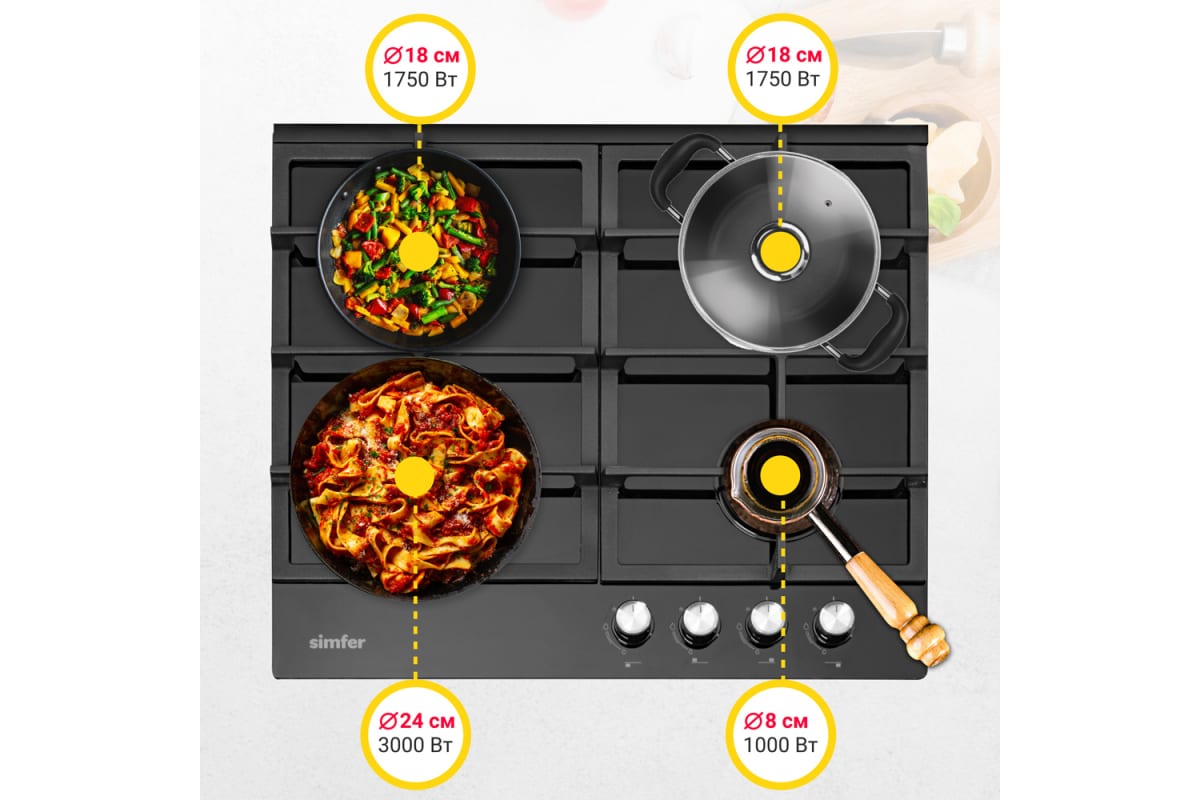 Диаметр каждой конфорки