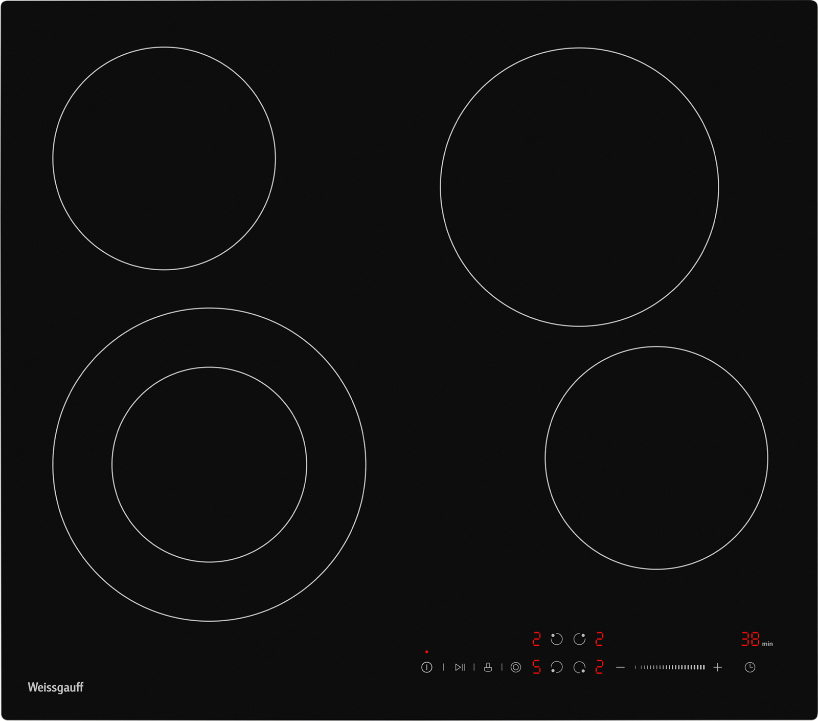 Конфорки: 4 конфорки: 1 х 1000/2200 Вт, 1 х 1800 Вт, 2 х 1200 Вт