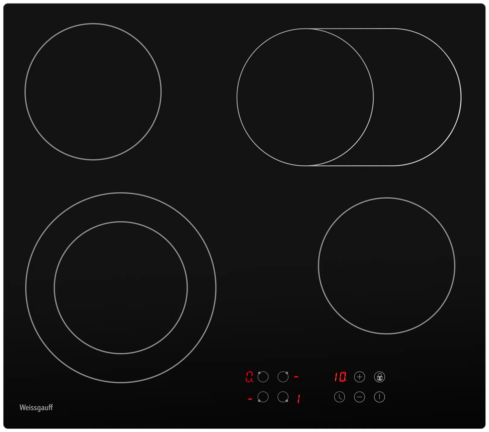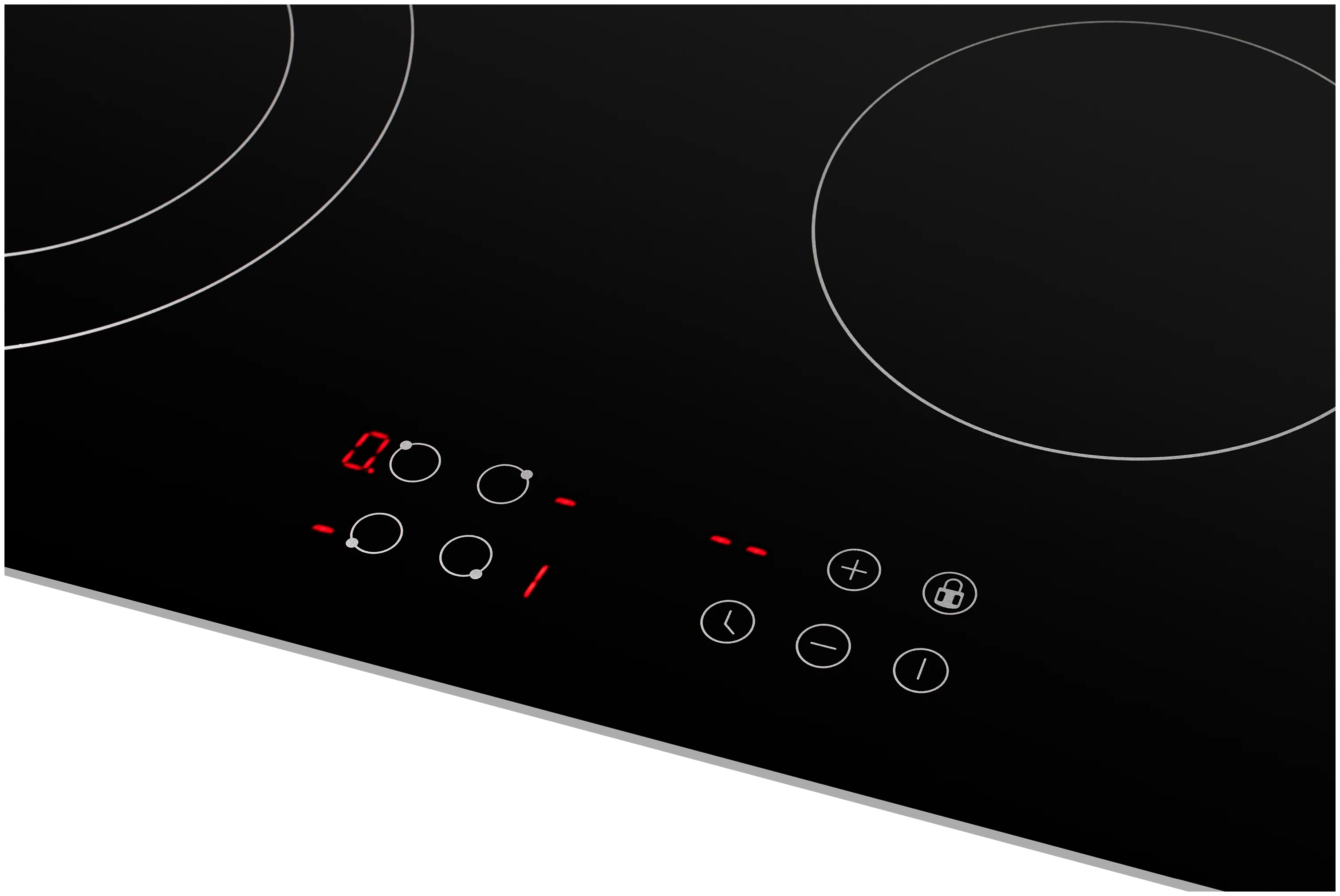 защитное отключение конфорок, индикатор остаточного тепла, кнопка блокировки панели