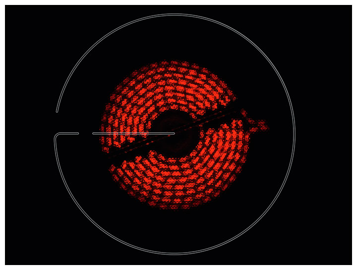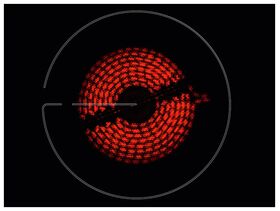 левая задняя конфорка: 145мм; левая передняя конфорка: 120/210мм; правая задняя конфорка: 180мм; правая передняя конфорка: 145мм