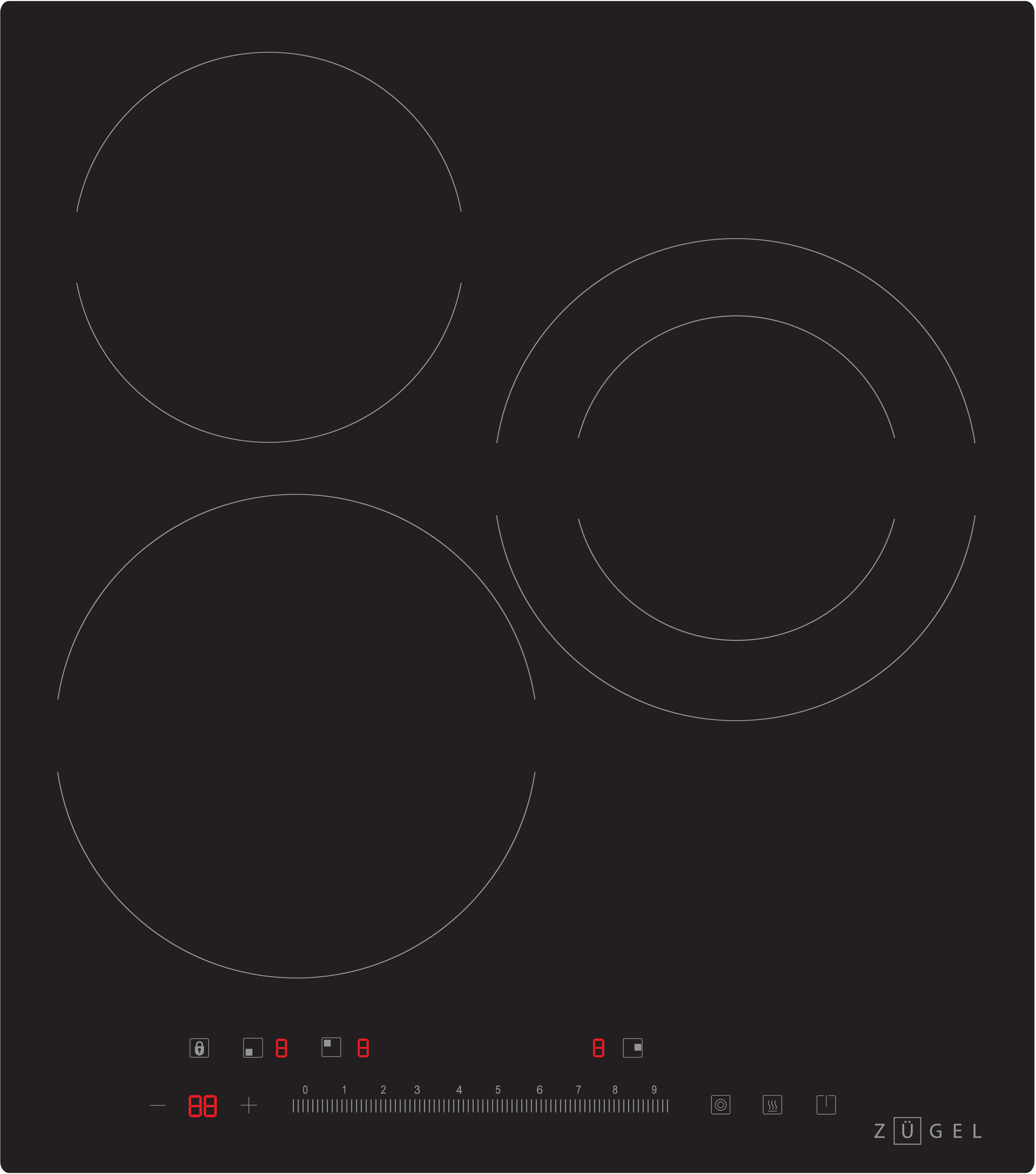 9 уровней нагрева, Функция Подогрев, Автоотключение, Зона расширения: двойная, Защита от перелива, Защита от перепадов напряжения, Высококачественная стеклокерамика Vitro Ceramic Glass
