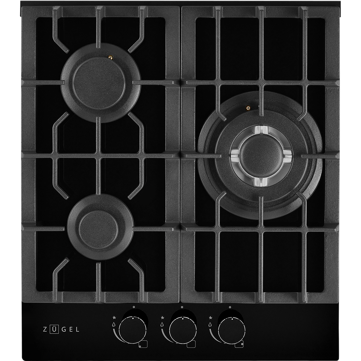 Мощная WOK-конфорка с 2 рассекателями и тройным контуром огня, Металлические дизайнерские ручки, Технология "газ на стекле", Форсунки для конверсии(природный/сжиженный) газа в комплекте