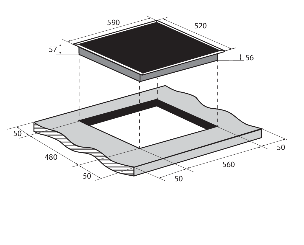 9 ступеней мощности, Функция Подогрев, Распознавание наличия посуды, Автоотключение, Защита от перелива, Защита от перепадов напряжения, Высококачественная стеклокерамика Vitro Ceramic Glass, Минимальная толщина столешницы для встраивания 3 см