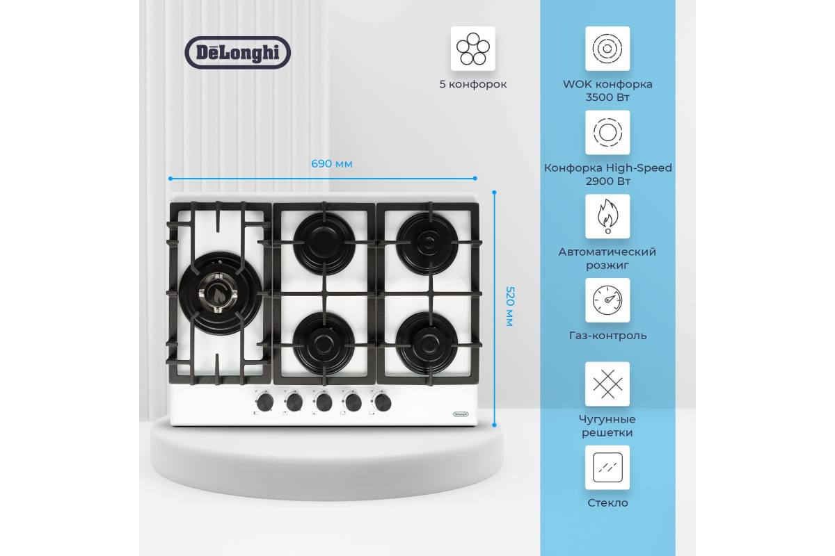 Технические характеристики варочной панели DeLonghi GERMANA 7GW BB V77955352
