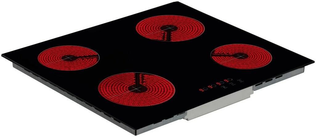 защитное отключение конфорок, индикатор остаточного тепла, кнопка блокировки панели