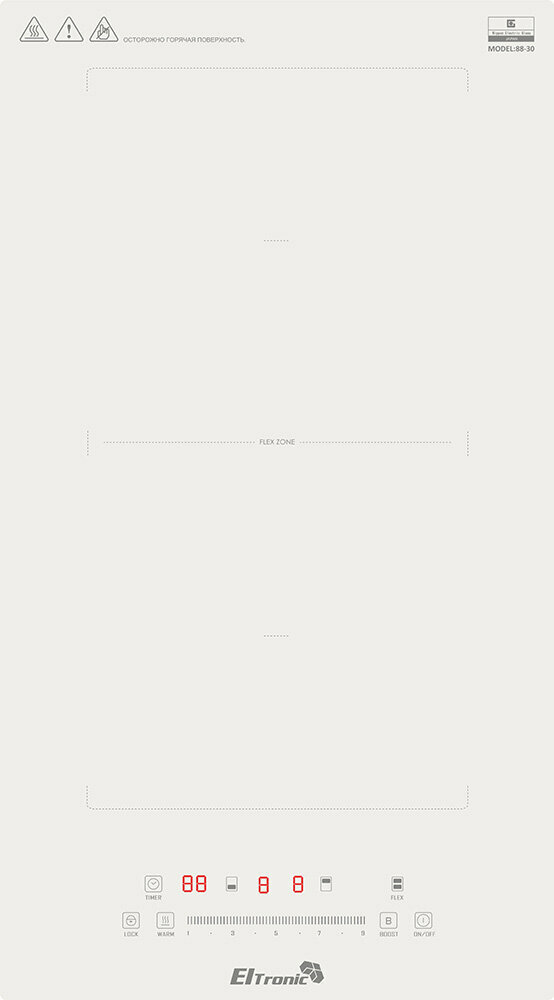 поддержание тепла, распознавание наличия посуды, таймер, функция Booster, функция Flex Zone