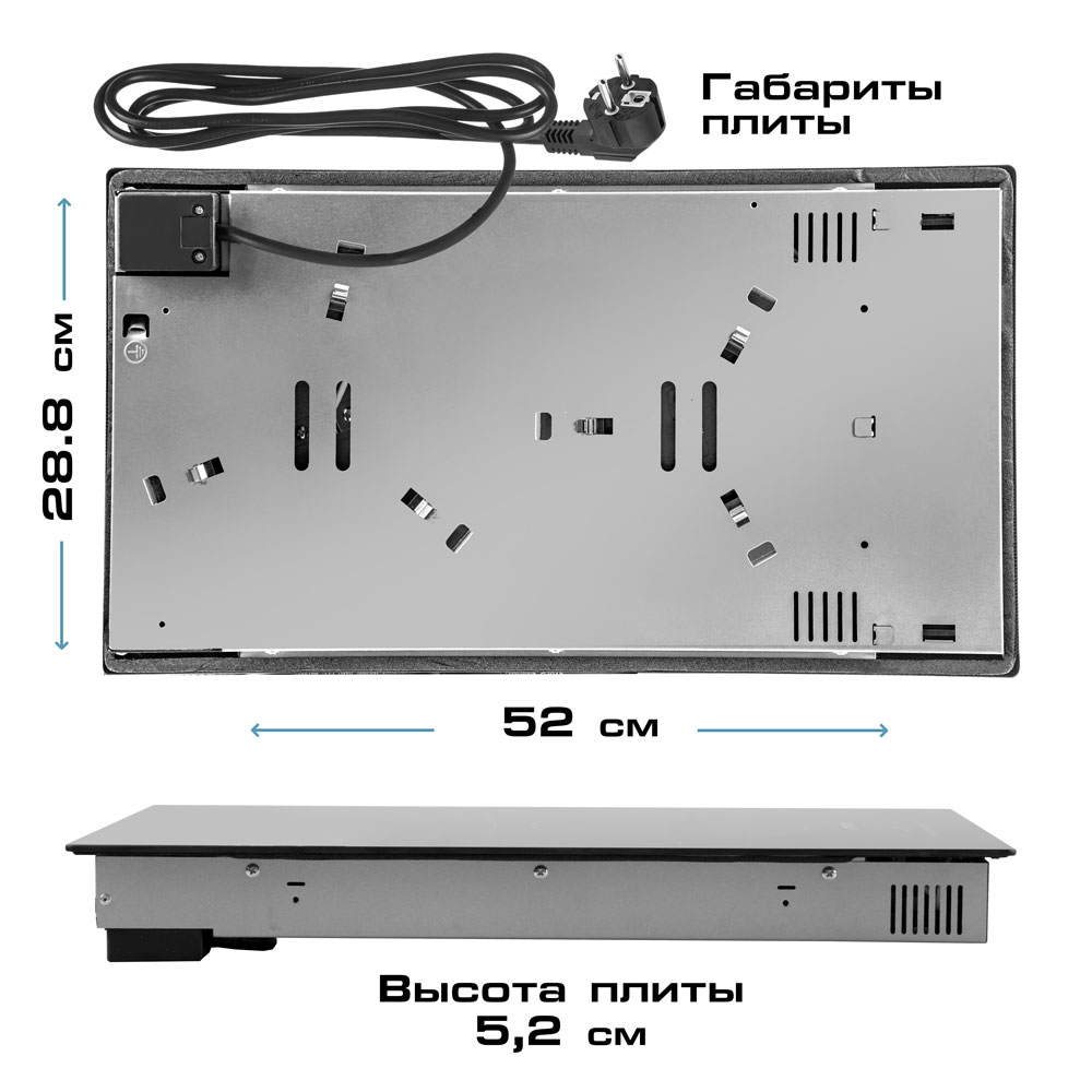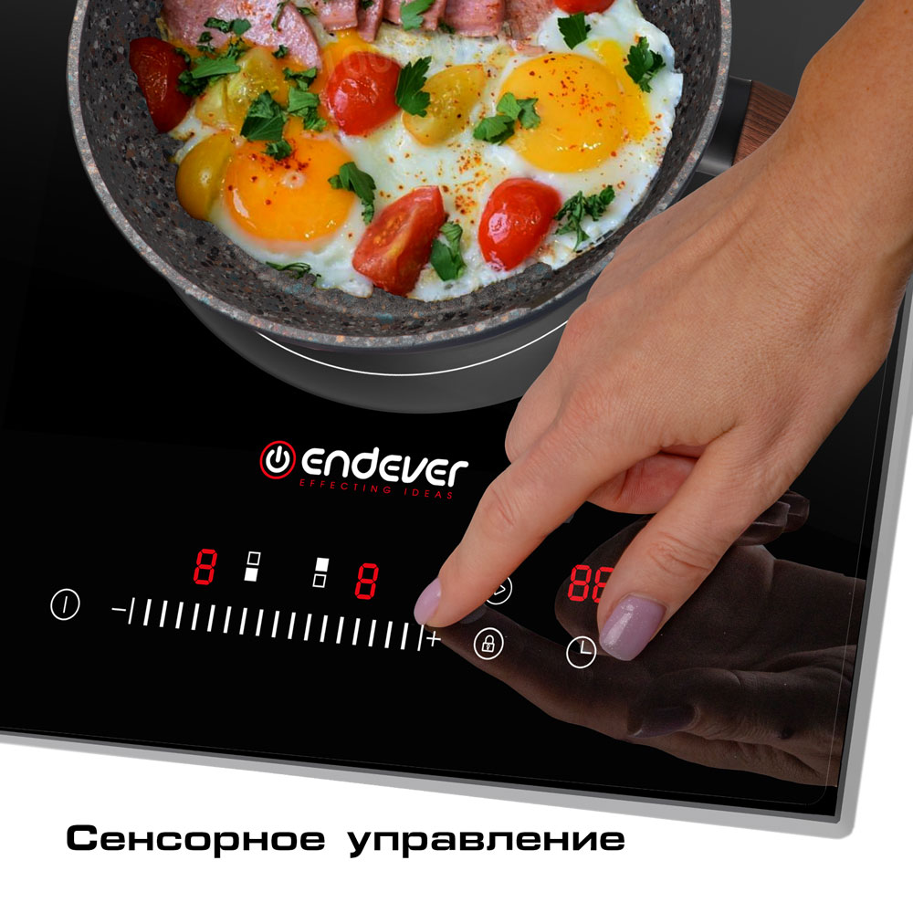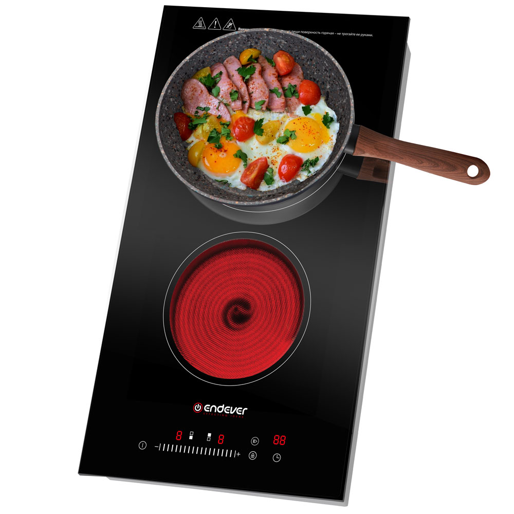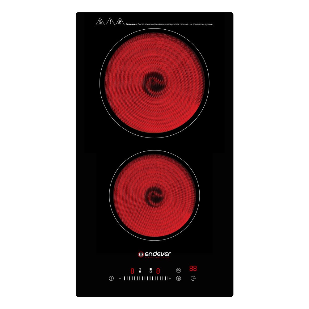 9 уровней мощности, Сенсорное управление, Стеклокерамическая рабочая поверхность повышенной прочности, Таймер работы 99 минут, Функция защиты от скачков напряжения в сети, Функция защиты от перегрева, Функция блокировки, Функция автоотключения, Рекомендуемый диаметр посуды до 28 см, Допустимая нагрузка на поверхность 15 кг (по 7,5 кг на каждую конфорку)