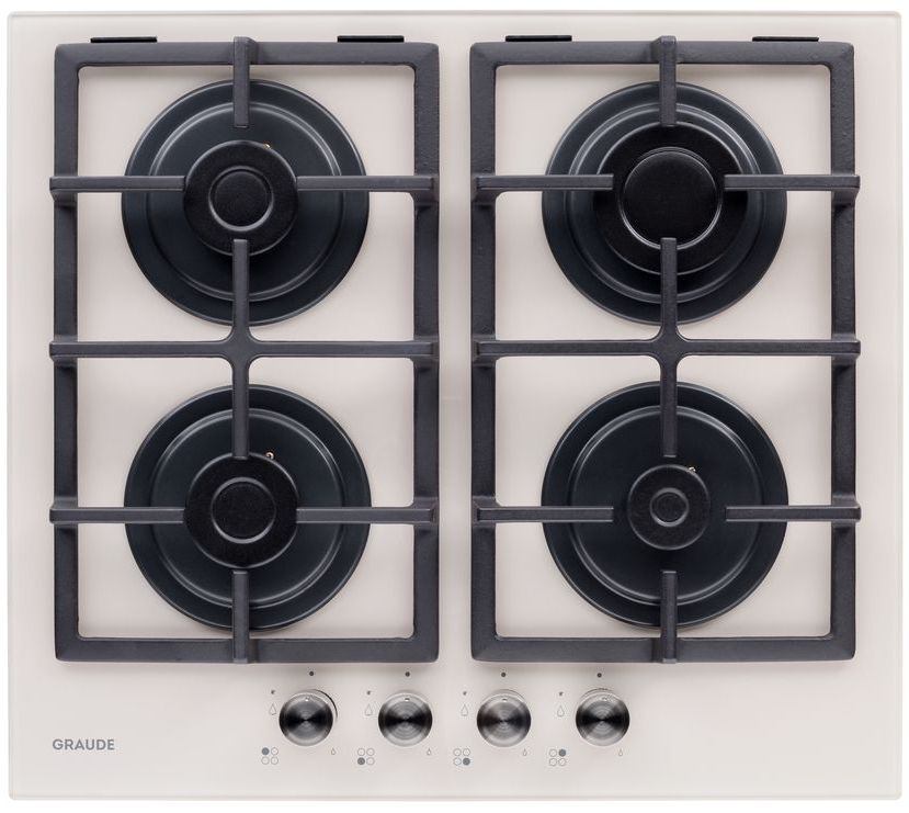 Подача газа перекрывается при внезапном затухании пламени. Для каждой горелки на передней части варочной поверхности имеется поворотный металлический переключатель, регулирующий подачу газа, а также система автоматического электроподжига.