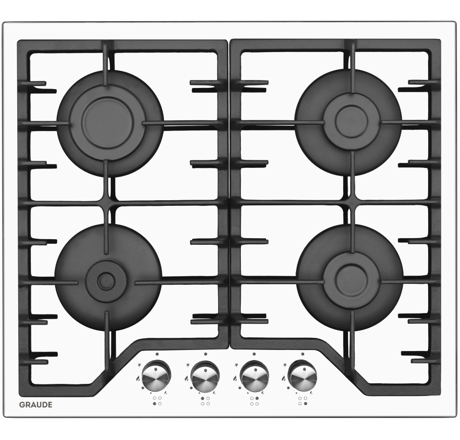Подача газа перекрывается при внезапном затухании пламени. Для каждой горелки на передней части варочной поверхности имеется поворотный металлический переключатель, регулирующий подачу газа, а также система автоматического электроподжига.