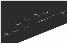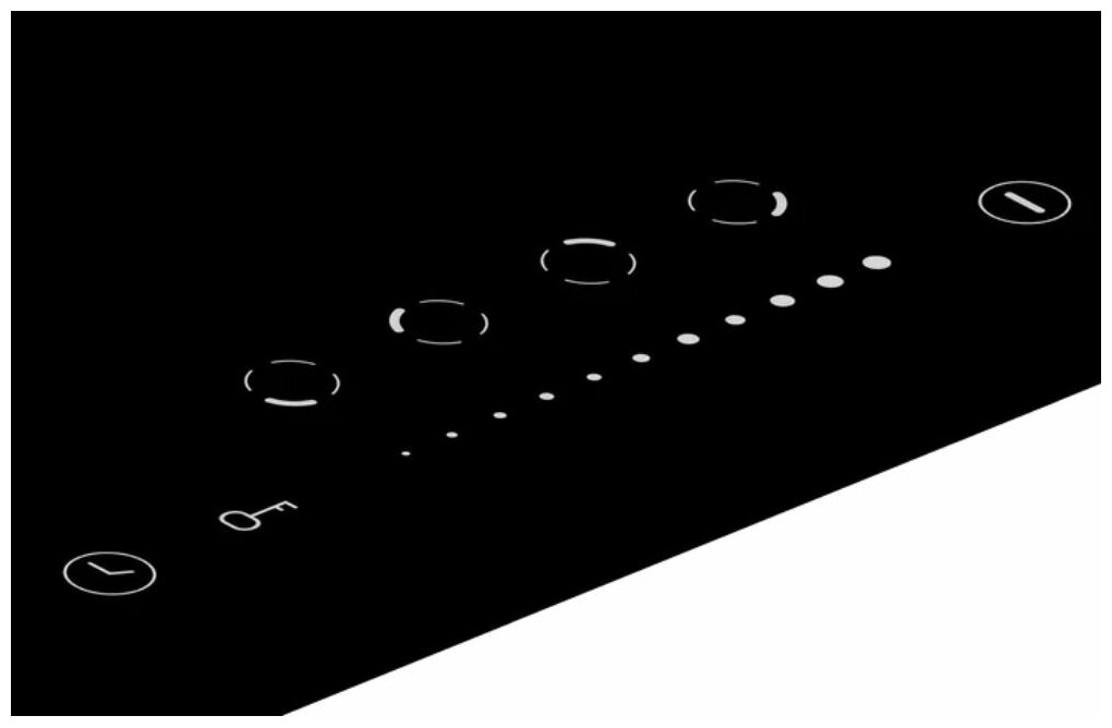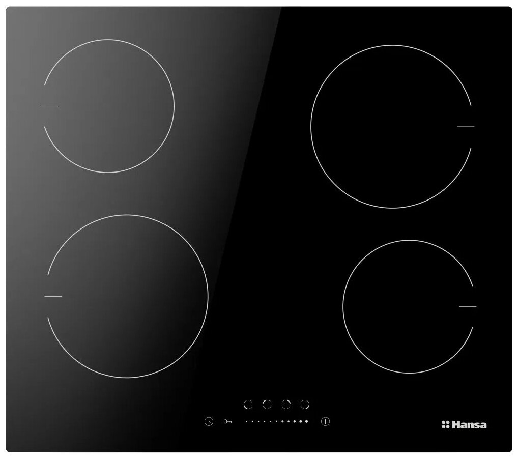 Передняя левая зона нагрева - 20 см Задняя левая зона нагрева - 16,5 см Передняя правая зона нагрева - 16,5 см Задняя правая зона нагрева - 20 см
