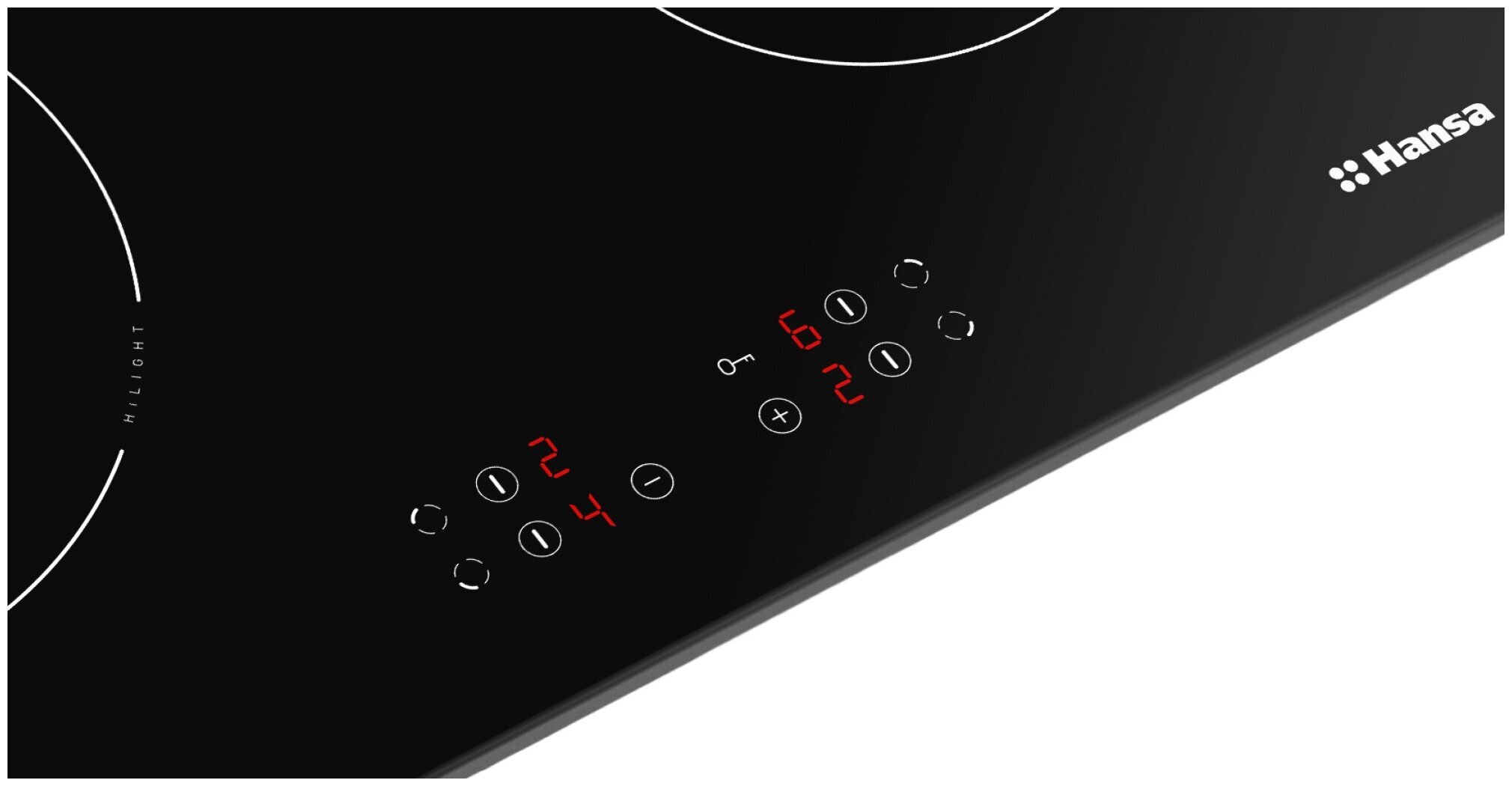 защитное отключение конфорок, кнопка блокировки панели, индикатор остаточного тепла