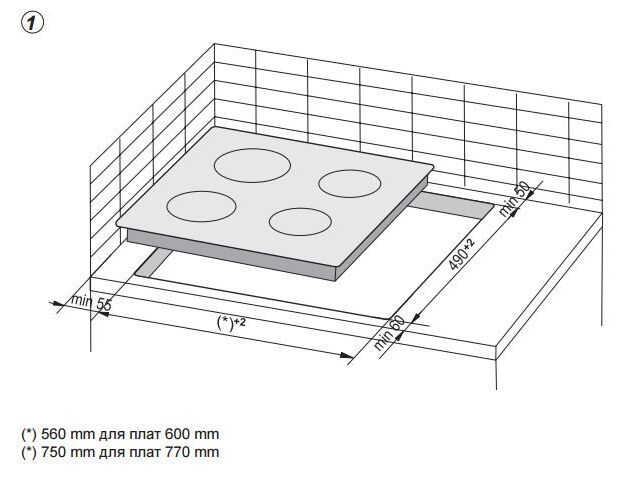 Размеры ниши для встраивания (ШхВxГ) 560 x 490 мм